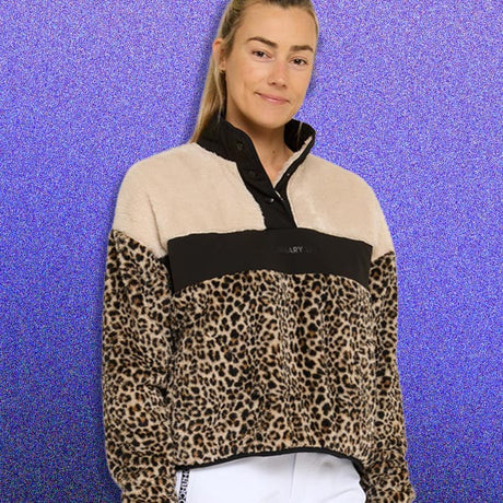 Womens Sherpa Half Zip Fleece | Leopard